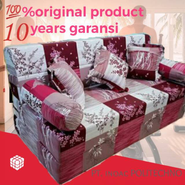 Produk dijamin original produksi PT inoac politechno yak... Sofabed inoac d23 eon light greenBergaransi 10thn..Spesifikasi ukuran sofabed:UK no 1. 180x200x20 _Bantal 3pc ,guling 2pcUK no 2. 160x200x20_bantal 3pc , guling 2pcUk no3. 145x200x20_bantal 2pc , guling 2pcUK no4. 120x200x20_bantal 2pc ,guling 2pcUK no5. 90x200x20_bantal 1 PC , guling 2pcDengan kualitas nyaman dipakai dan awet..Ke awetan nya teruji Dalam pemakaian normal bisa sampai 20thn bisa Sampai anak cucu hehe... *Bukan buat warisan jg yak_ heheheKami juga melayani pilihan berbagai ukuran (custom) yg di sesuaikan dengan kebutuhan Pilihan motif sangatt banyak ya sis_motif dewasa, anak anak ,kartun, bunga ,minimaliskpuasan anda kebanggaan kami...___________________________