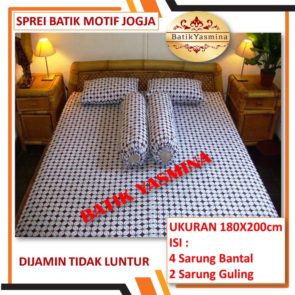 Sprei Batik Jogja Motif Kawung Kecil Bahan Katun Halus Dan Adem Dijamin Tidak Luntur dan Tidak Menyusut Ukuran 180x200cmSatu Set Isi 4 Sarung Bantal Tidur dan 2 Sarung G