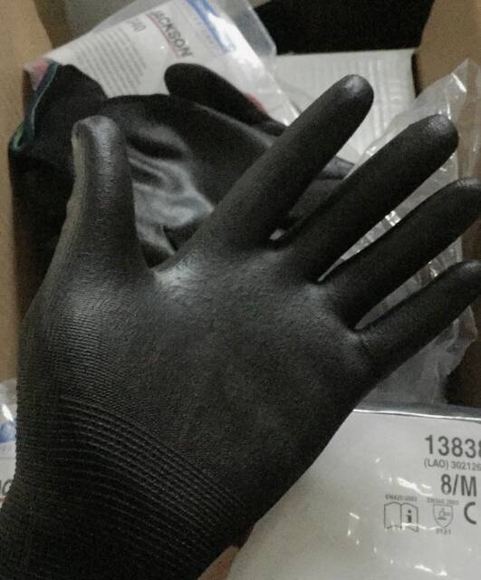 Sarung tangan dari Kimberly-Clark ini mengalami transisi perubahan brand dari Jackson MENJADI Kleenguard (Part number, sertifikat dan spesifikasi TETAP SAMA)Ukuran: M/8, L/9MOHON MENYANTUMKAN UKURAN Sarung Tangan Mechanic Safety *Jackson G40 Polyurethane Coated Glove Original Product Kleenguard *Brand Safety Glove *Trademark of kimberly-Clark USPanjang : 8"Keterangan :Sarung tangan safety yang memberikan perlindungan extra, tahan terhadap oli/minyak/grease, anti abrasi, daya cengkeram yang kuat walaupun dalam kondisi basah/berminyak, kondisi perkerjaan basah & kering, tidak panas bila digunakan untuk waktu lama,Dapat dicuci sehingga dapat dipakai berulang-ulang, jauh lebih sensitif dibanding sarung tangan kulitKode produk: 13838, 13839Penggunaan: General maintenance, assembly, Manufacturing, Electronic Assembly, Controls Handling, Packaging, inspection Material: Nylon with Polyurethane CoatedSertifikat : EN 388:2003 : 3131 / CE 0321Varian glove ini menawarkan :- Excellent Dexterity : Ideal untuk menangani komponen-komponen kecil- Tidak mudah kotor (Dapat dicuci berulang2)- Seamles Knit Nylon Back : Punggung sarung tangan terbuat dari bahan nylon tanpa jahitan sehingga tidak panas dan nyaman saat digunakan- Good Tear & Abrasion Resistance- Excellent Grip : Untuk pekerjaan basah dan berminyak- Hand Spesific : Untuk gerak yang lebih ergonomis (tidak kaku)#sarungtangan #sarungtanganfashion #sarungtanganmotor #sarungtangansafety #s