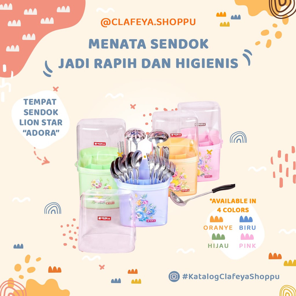 Tempat Sendok Garpu Lion Star + Tutup BeningTempat Sendok TS-33 Adora Cutlery Keeper buatan Lion Star memiliki keunggulan karena terbuat dari bahan plastik premium, tidak berbau dan tidak mudah pecah/luntur. Sangat cocok ditempatkan pada Meja Makan Anda- Terdapat Tutup Bening- Terdapat 5 sekat yang dapat dilepas- Mudah dibersihkanMerk : Lion Star TS-33 Adora Cutlery KeeperP x L x T : 17 x 10 x 27.5 cmSilakan atc bubblewrap utk menjaga keamanan saat pengiriman. https://shopee.co.id/clafeya.shoppu/90221703Warna random. Tanyakan dulu ketersediaan warna kepada admin. Yuk, tunggu apalagi?Happy Shopping, Sho