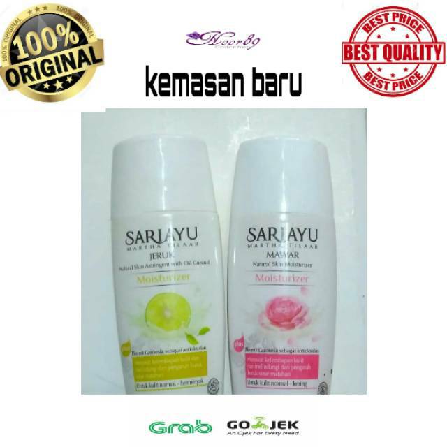 Sariayu Pelembab Relaxing Aromatic 35 mlTersedia 2 Pilihan Aroma :- Mawar ( Utk Kulit Normal Kering )- Jeruk ( Utk kulit Normal Berminyak )Merupakan pelembap plus tabir surya yang mengandung minyak esensial neroli yang aromanyabekerja sebagai relaxing aromatic. Dengan kandungan ekstrak jeruk nipis untuk membantumengurangi kelebihan minyak dan kesan mengkilap pada wajah.Cara Pemakaian: Usapkan secara merata pada wajah dan leher setelah dibersihkan.Perhatian!: -Hentikan pemakaian bila terjadi iritasi/alergi.-Hindarkan dari paparan sinar matahari lang