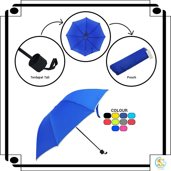 Payung Lipat Polos LOKO.Warna available: Kuning, Navy, Biru Muda, Merah, Hijau, Abu, Maroon, Biru BCA, Pink, HitamUkuran panjang : 25 cm (kondisi dilipat)Panjang : 67 cm (kondisi dipanjangkan) Diameter : 99 cmBerat: 285 gramGrade: BPernah ga sih pakai payung trus tiba2 kebalik pas ditiup angin atau patah pas mau dipakai karena besinya kurang bagus? Atau malu dan ga pede karena pakai payung gratisan alias ada sablon merek di sana sini.. sekarang saatnya pakai payung yang lebih manusiawi.. yang bikin kamu makin kece badai dan instagramable.. Payung Loko sudah dikenal sama netizen sebagai payung yang awet dan harganya pun terjangkau. Cocok untuk kamu .. ya kamu yang layak dapat barang yang terbaik ini.#payunglipat #payungpolosloko #payung