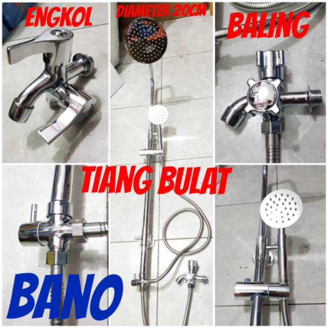 PAKET shower tiang set coulomn stainless bano (TIANG BULAT) + KRAN CABANG- tinggi tiang min 1,1mtr- max 1,2mtr ( bisa setel tinggi tiang nya)- diameter shower besar 20cm- shower kecil diameter 10cm- gantungan shower kecil ( bisa diputar/tekuk)- diveter (pengaturan on shower lebar dan kecil)- 2 pcs kaki penyangga yg ke tembok- sudah dilengkapi sekrup dan fiser- 1 BUAH KRAN CABANG ( 2 MODEL KRAN = ENGKOL DAN BALING) untuk pemesanan model kran harap tulis dicatatan. jika tidak akan dikirimkan ran