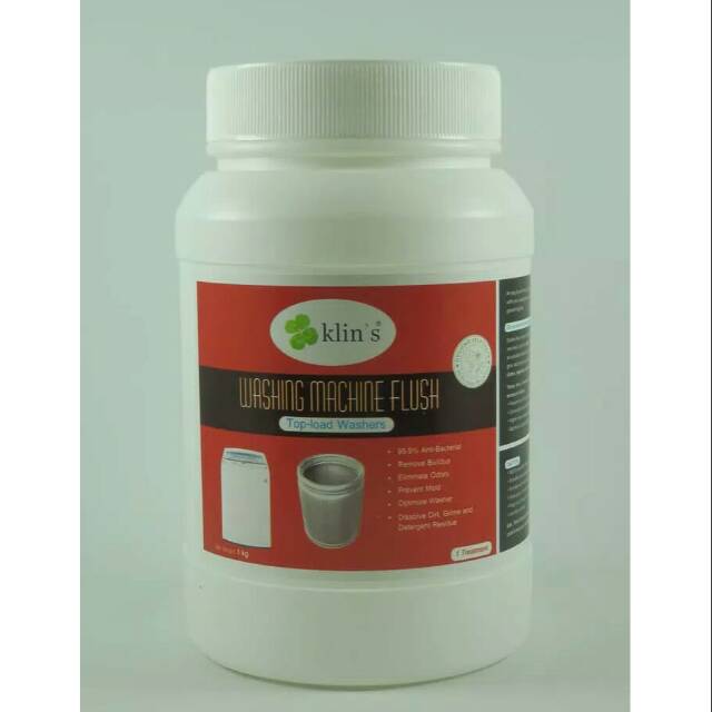 Pembersih mesin cuci Khusus Mesin Cuci Buka AtasCara mudah untuk membersihkan mesin cuci bagian dalam.Tahukah anda bahwa mesin cuci anda 500x lebih kotor daripada toilet?Studi membuktikan bahwa bakteri dan kotoran terkumpul di balik drum mesin cuci setelah 1 bulan pemakaian pertama. Kotoran, bakteri, virus dan jamur dari pakaian terutama pakaian dalam dan kaos kaki terkumpul di balik drum mesin cuci setiap kali mesin cuci dioperasionalkan.Cara Penggunaan:1.Kosongkan mesin cuci2.Nyalakan mesin cuci dan set pada posisi "WASH'' dan water level "HIGH"3.Ketika mesin cuci berhenti mengisi air, masukkan seluruh bubuk Klin's Washing Machine Flush ke dalam "DRUM" mesin cuci (bukan di tempat deterjen)4.Biarkan mesin cuci berputar minimal 10 (sepuluh) menit5.Setelah mesin cuci berhenti berputar, buka cover mesin cuci dan akan terlihat banyak kotoran dalam drum mesin cuci, ambil kotoran menggunakan saringan halus / serokan6.Diamkan mesin cuci selama 2 jam 7.Nyalakan kembali mesin cuci dan set pada posisi "WASH", "RINSE", "SPIN"8.Setelah selesai, lap/seka sisa-sisa kotoran yang menempel pada drum mesin cuciGunakan selalu Klin's Washing Machine Flush setiap 3 (tiga) bulan atau 40x pencu
