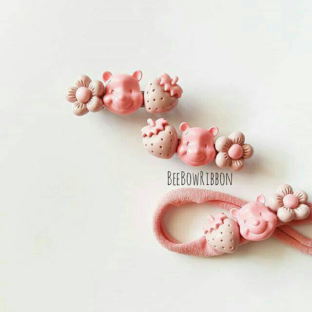 New Happy Pooh . Type : hairclips/ headband. . colour : pink salem--------------------------------