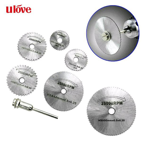 Mata Gergaji 1 set isi 6pcs Mata Gergaji + 1pcs Gagang, HSS ( High Speed Steel)Spesifikasi;Hole Diameter : 6.35mmMandrel Diameter : 3.17mm x 50 mmBlade Diameter :- 1 Pcs Gagang Mandrel 3.17mm X 50 mm- 1 Pcs Gergaji Diameter 50mm X 0.8mm- 1 Pcs Gergaji Diameter 44mm X 0.8mm- 1 Pcs Gergaji Diameter 35mm X 0.8mm- 1 Pcs Gergaji Diameter 32mm X 0.7mm- 1 Pcs Gergaji Diameter 25mm X 0.8mm- 1 Pcs Gergaji Diameter 22mm X 0.8mmMaksimum : 20.00