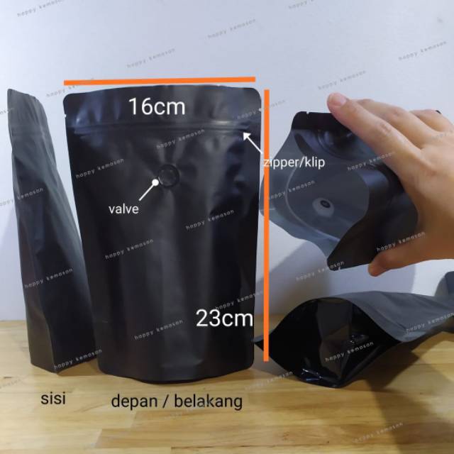 Standing Pouch Premium dilengkapi zipper dan valvewarna : Hitam Doff, Putih Doff, Coklat Doff, Merah Doff, Goldukuran : 16cm x 23cm x 6cmkapasitas : 250 gr biji kopimaterial : PTT/AL/LLDPEketebalan : +/- 127micronkelengkapan : zipper, valve lubang 6/ lubang 5merk : -Harga per 50 pcsMinimal order 50 pcs, berlaku kelipatan. Pengiriman dilakukan sejak hari H sampai dengan H+3 setelah order diterima.Tolong baca deskripsi produknya! #kemasan #kemasanminuman #bandung #